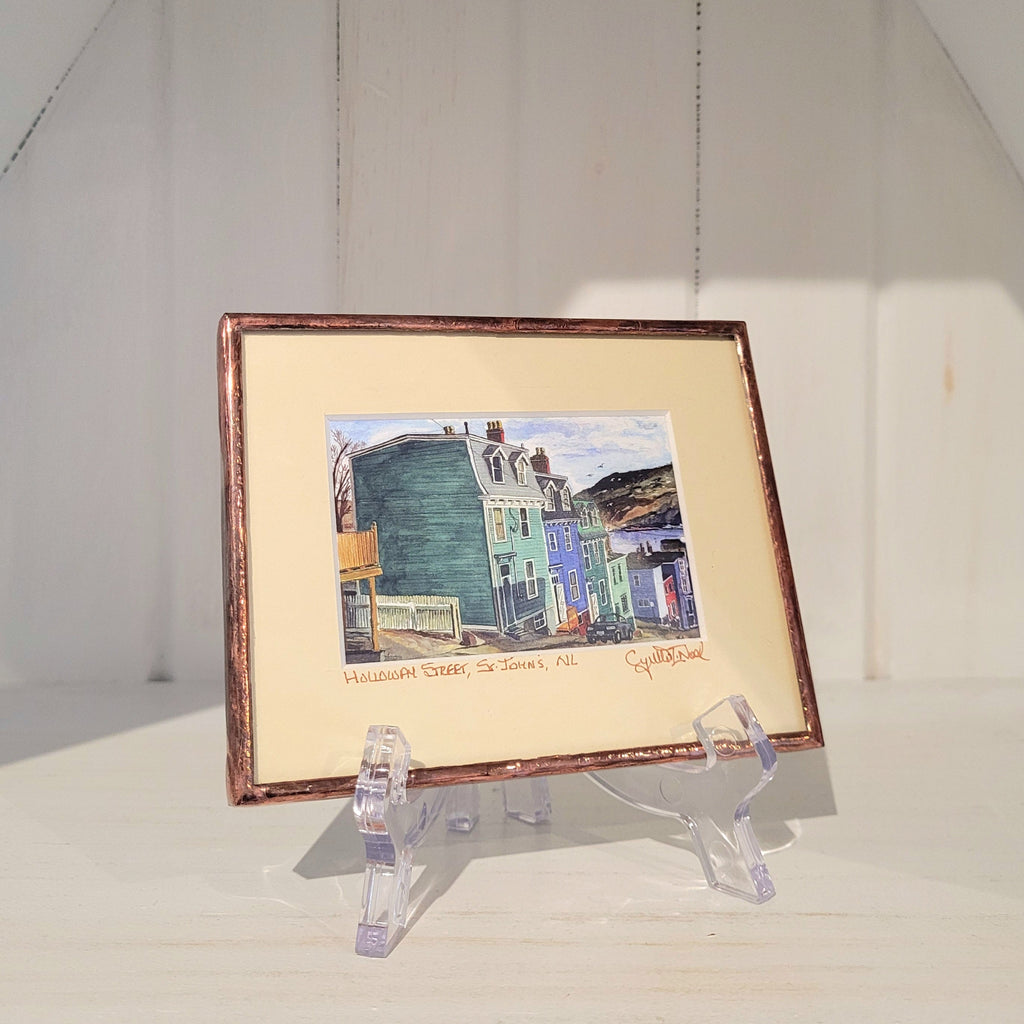 Beautifully crafted copper framed art prints by local artist Cynthia Noel. Each piece has copper framing, glass on front and back, and a mat titled and signed by Cynthia Noel. They are ready to hang!